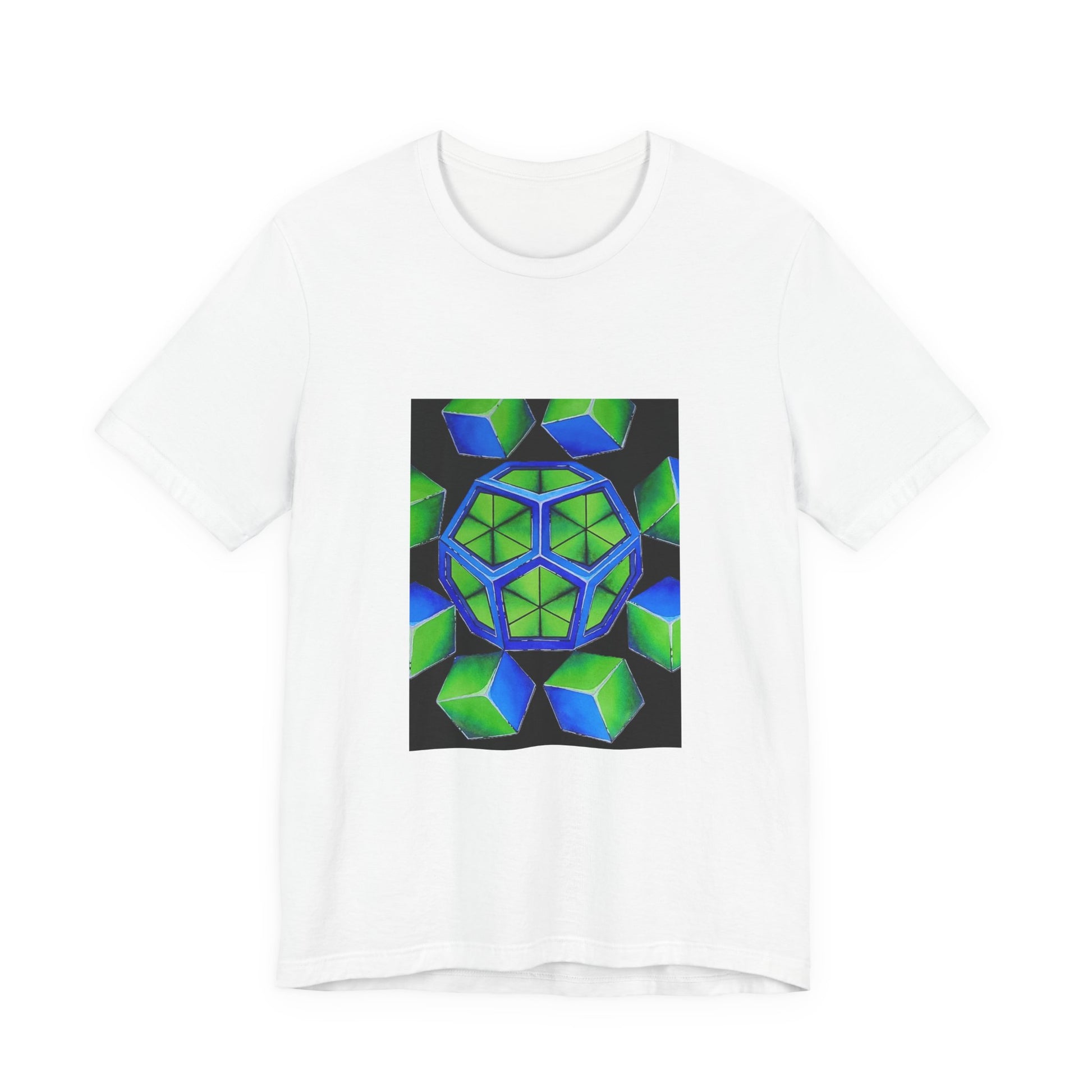 'Dancing Cubes" tshirt featuring illustration by Noto the artist. Vibrant Geometric Design Tee, Unisex Graphic T-Shirt, Summer Fashion, Gift for Art Lovers, Eco-Friendly Casual Wear