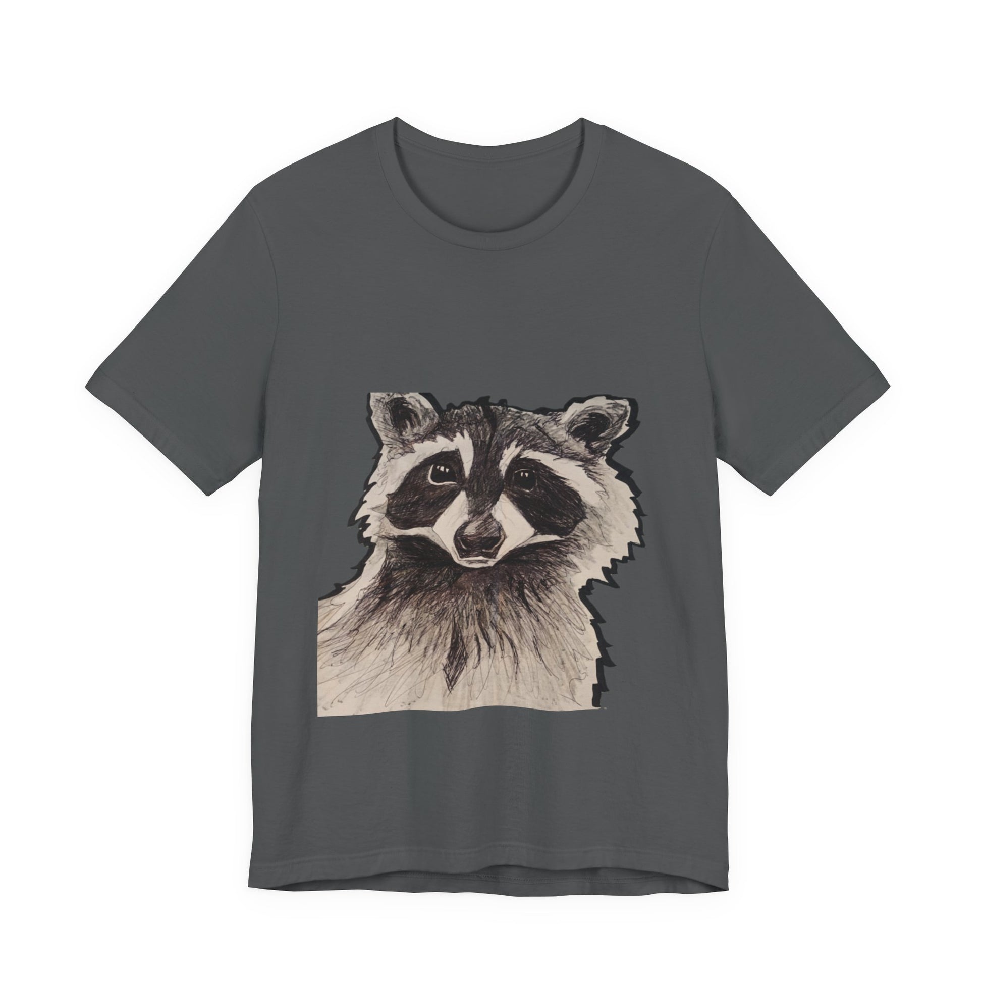 "Nosy Raccoon" illustrated by Noto the Artist. Raccoon Graphic Tee, Unisex Jersey Short Sleeve Shirt, Nature Lover Gift, Casual Wear, Wildlife Appreciation, Eco-Friendly Fashion